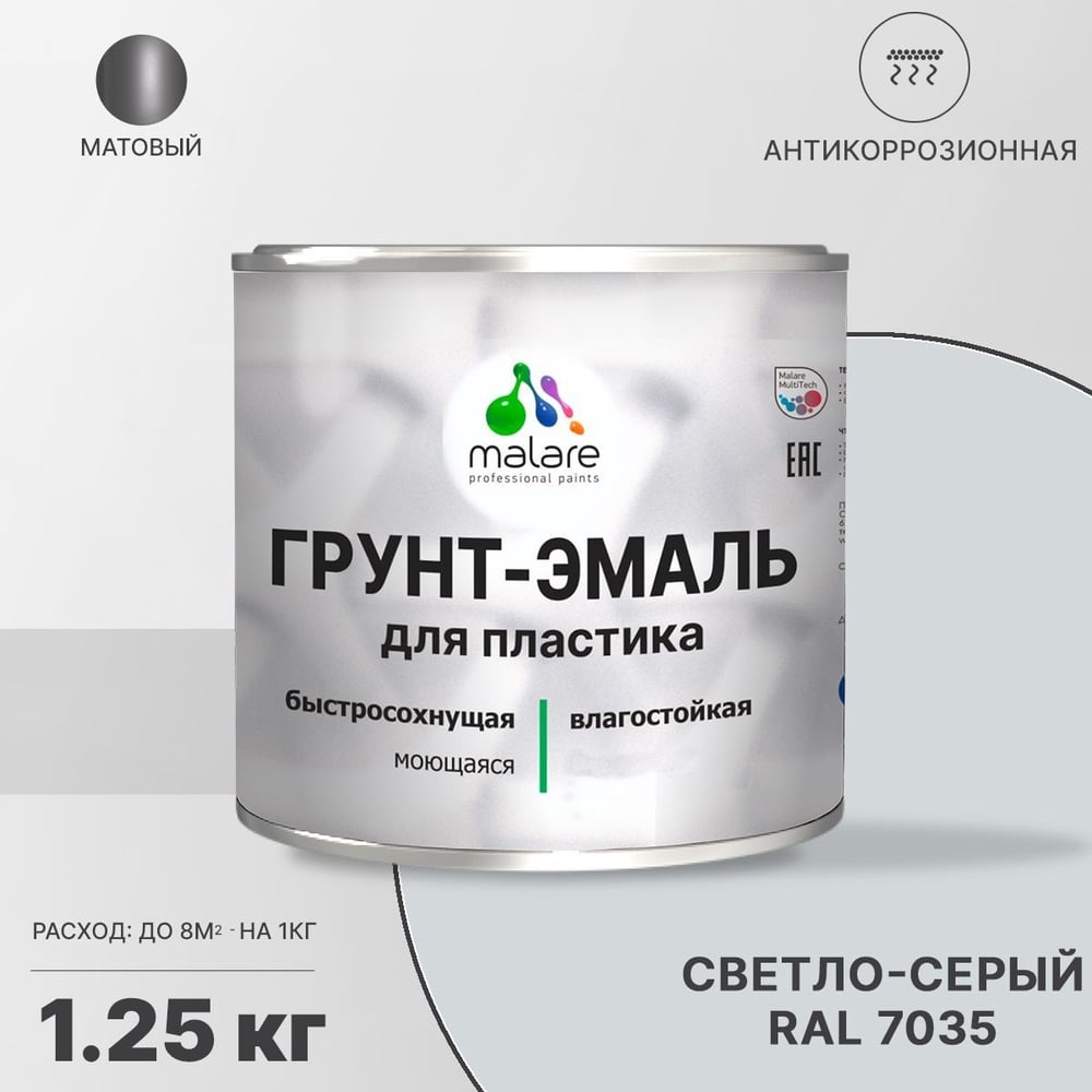 Грунт-Эмаль MALARE для пластика, окон и подоконников, сайдинга, матовый, светло-серый, 1,25 кг ГЭПЛСТ7035М0125