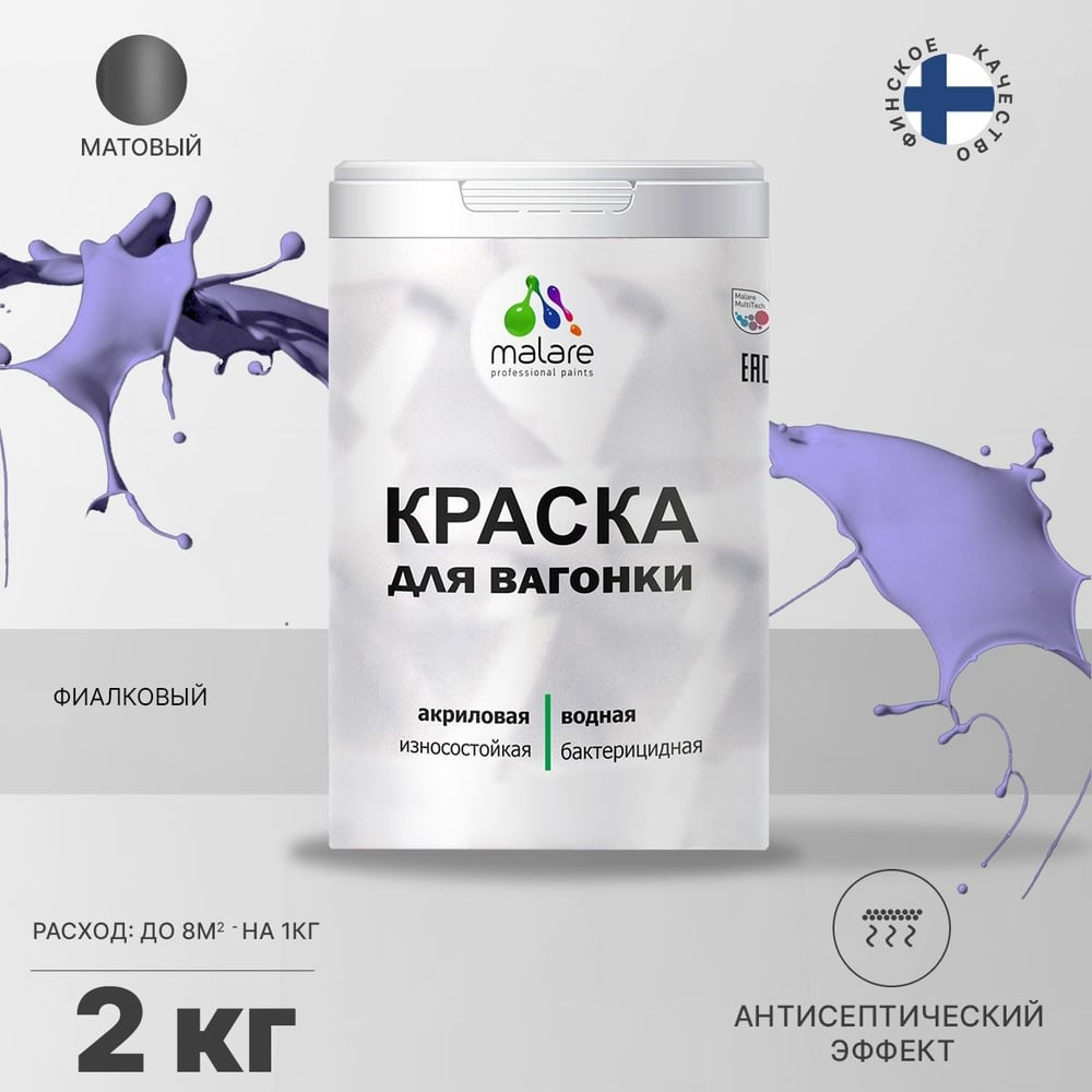 Краска MALARE для вагонки, с антисептическим эффектом, фиалковый, 2 кг КВГНКАФИАМ0200