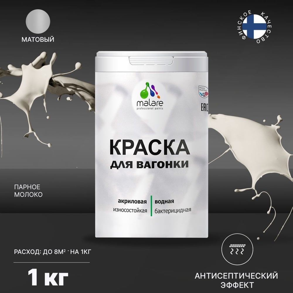 Краска MALARE для вагонки, с антисептическим эффектом, парное молоко, 1 кг КВГНКАПАММ0100