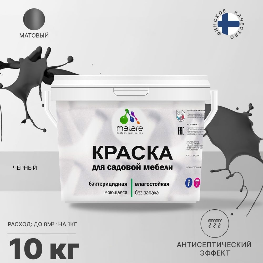Акриловая краска MALARE для садовой мебели, по дереву, для наружных и внутренних работ, моющаяся без запаха матовая, черный, 10 кг. КСДМБАЧЕРМ1000