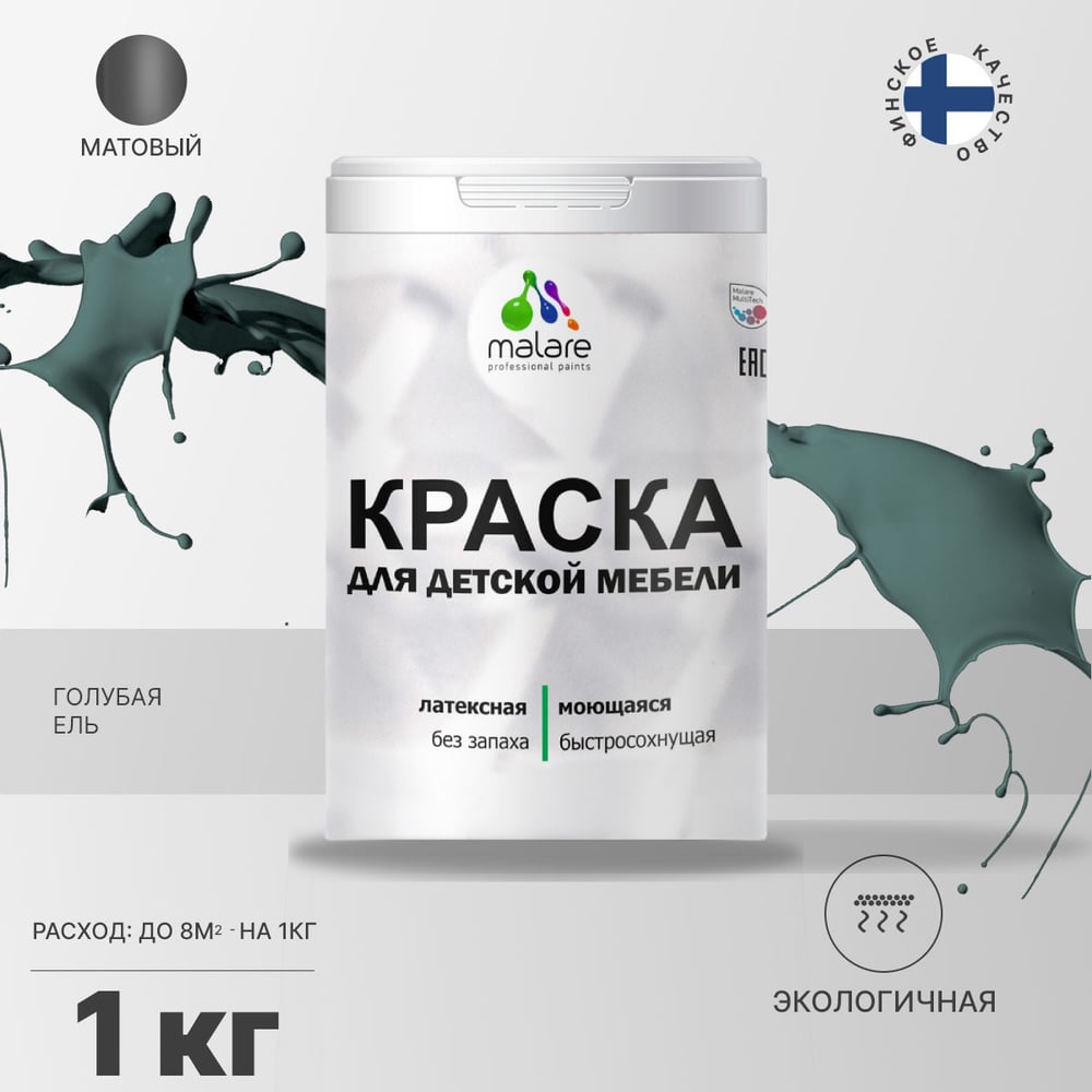 Акриловая краска MALARE для детской мебели для кухонных фасадов, мебели из дерева, моющаяся, быстросохнущая, без запаха, матовая, голубая ель, 1 кг. КДТМБАГОЕМ0100