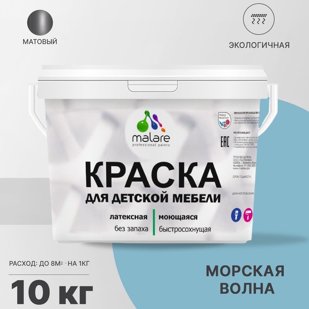 Акриловая краска MALARE для детской мебели для кухонных фасадов, мебели из дерева, моющаяся, быстросохнущая, без запаха, матовая, морская волна, 10 кг. КДТМБАМОВМ1000
