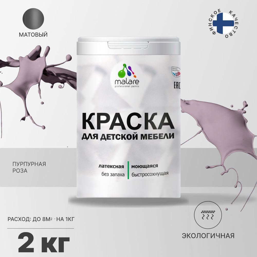 Акриловая краска MALARE для детской мебели для кухонных фасадов, мебели из дерева, моющаяся, быстросохнущая, без запаха, матовая, пурпурная роза, 2 кг. КДТМБАПУРМ0200