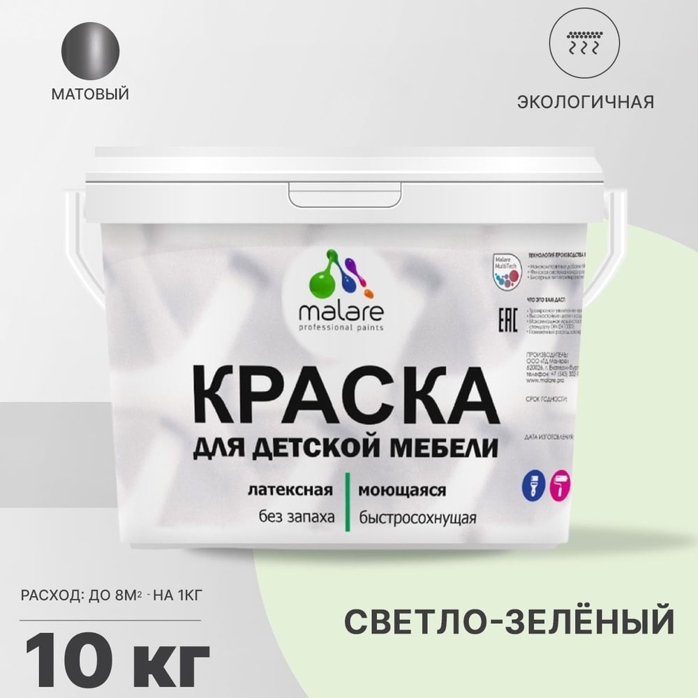 Акриловая краска MALARE для детской мебели для кухонных фасадов, мебели из дерева, моющаяся, быстросохнущая, без запаха, матовая, светло-зеленый, 10 кг. КДТМБАСВЗМ1000