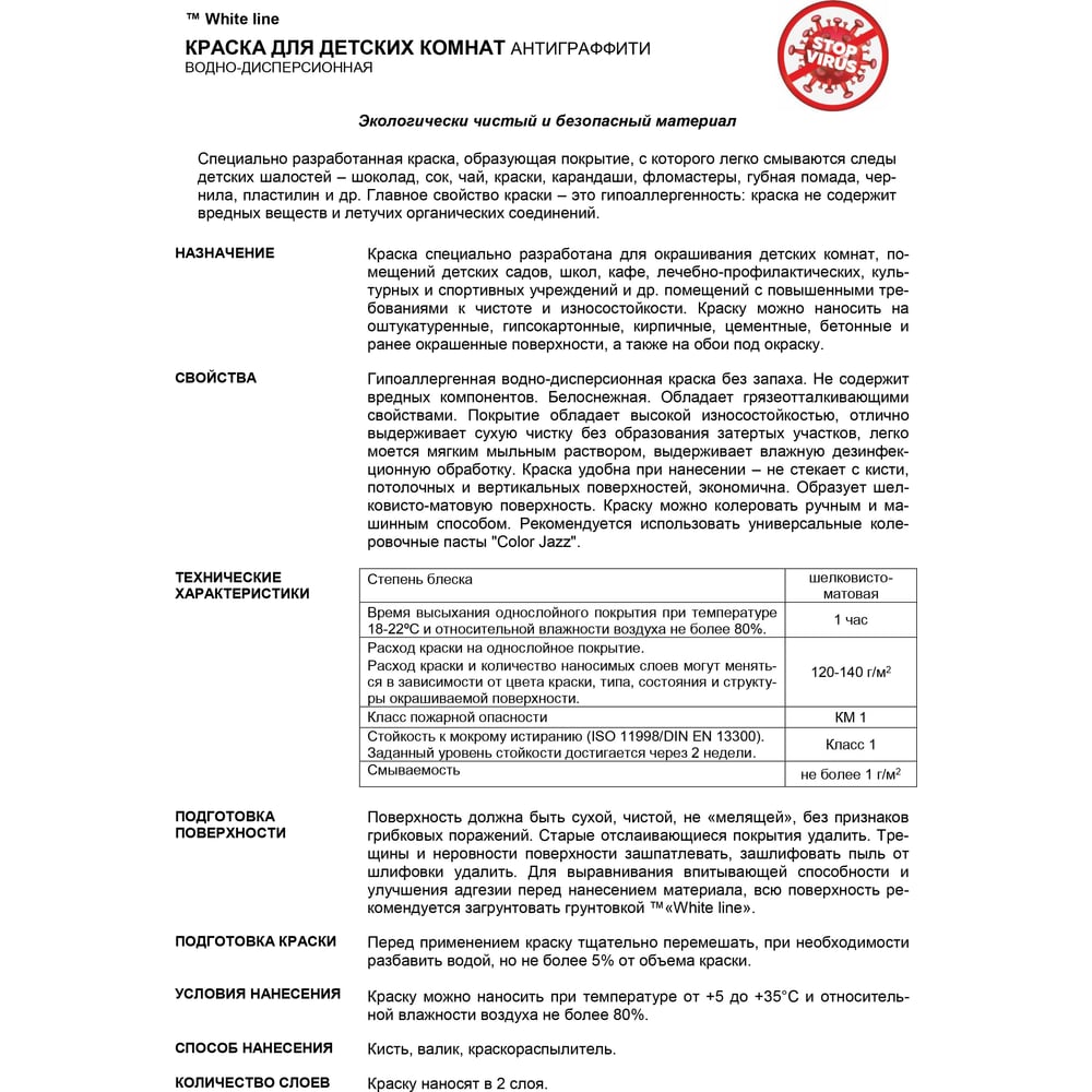 Краска для детских комнат White Line (антиграффити; 14 кг) 4690417092611