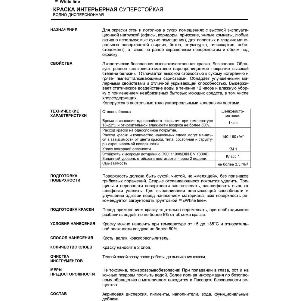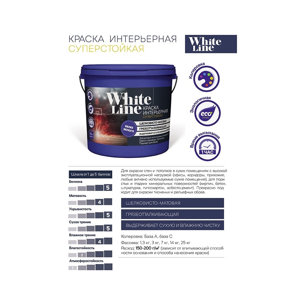 Суперстойкая интерьерная краска White Line 4690417092512