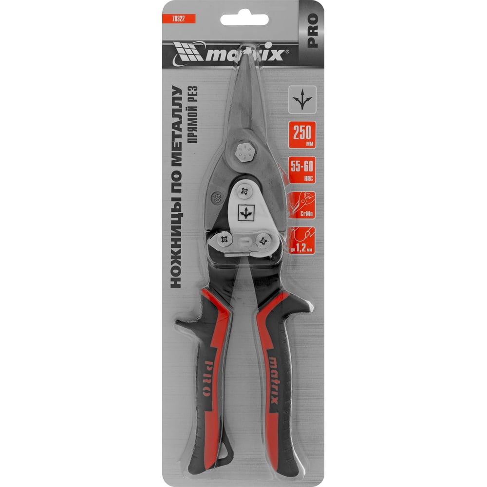 Ножницы по металлу Matrix PRO 250 мм, прямой рез, сталь CRMO, двухкомпонентные рукоятки 78322