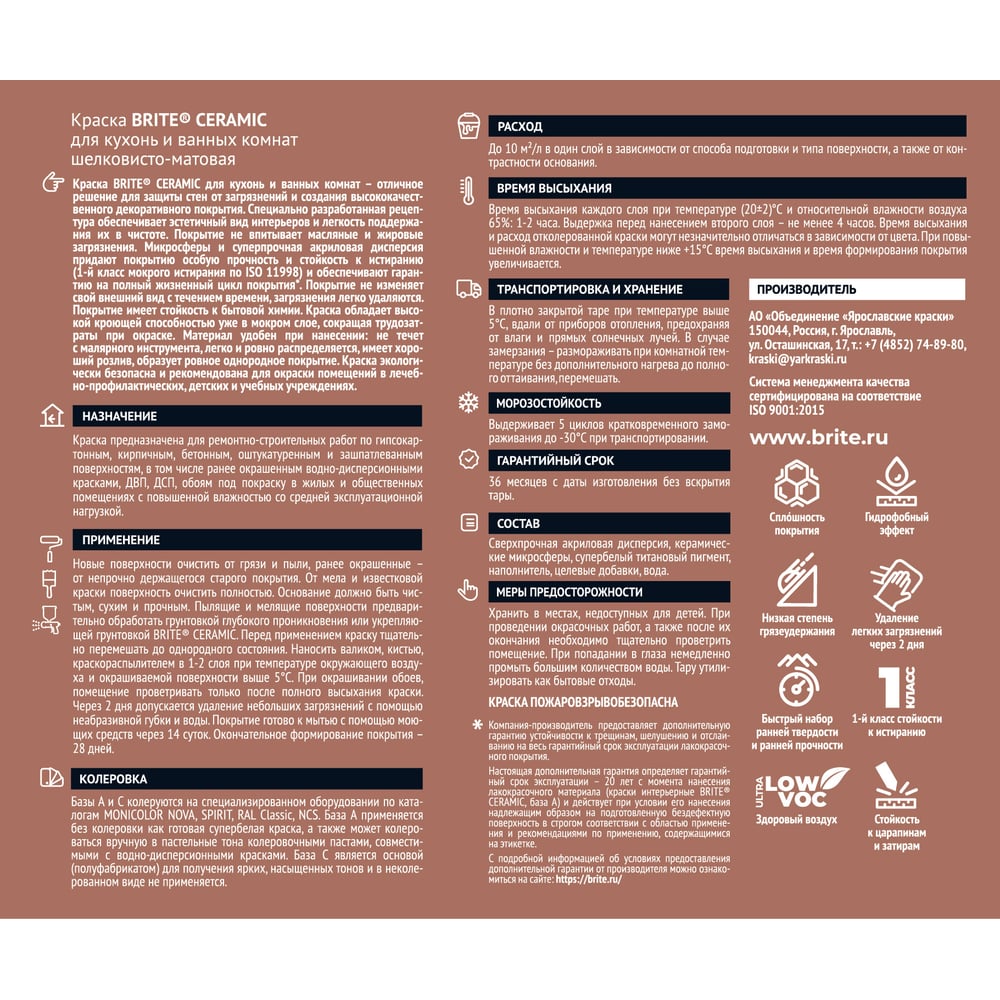 Краска для кухонь и ванных комнат BRITE CERAMIC О04597