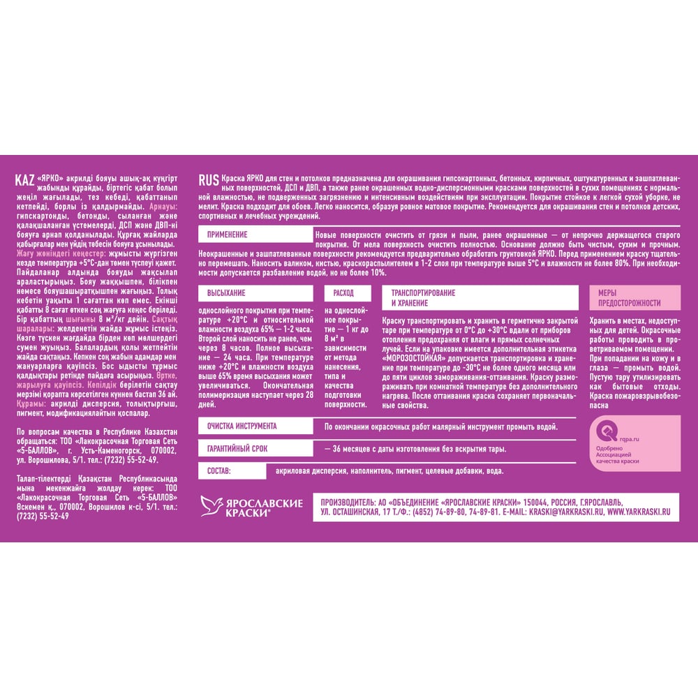 Краска для стен и потолков ЯРКО И476.3