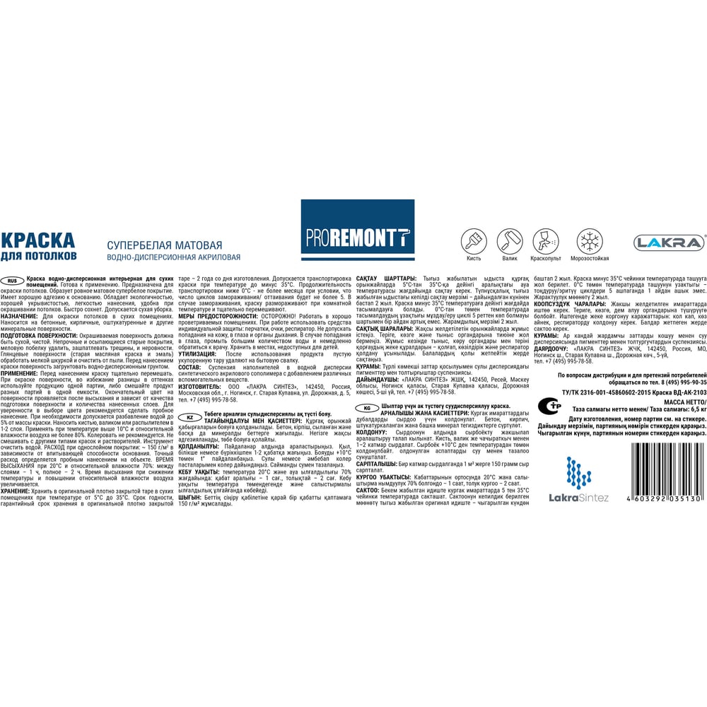 Краска для потолков Proremontt Лк-00012717