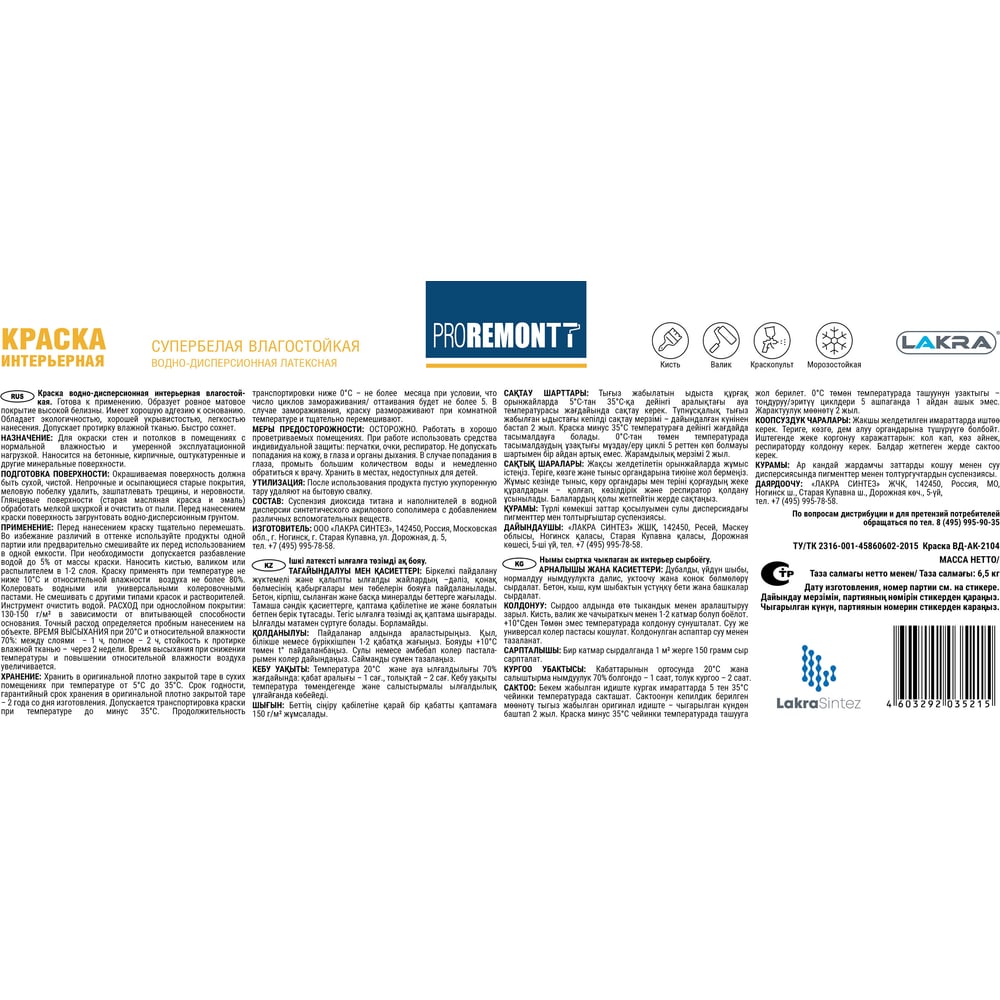 Влагостойкая интерьерная краска Proremontt Лк-00012725