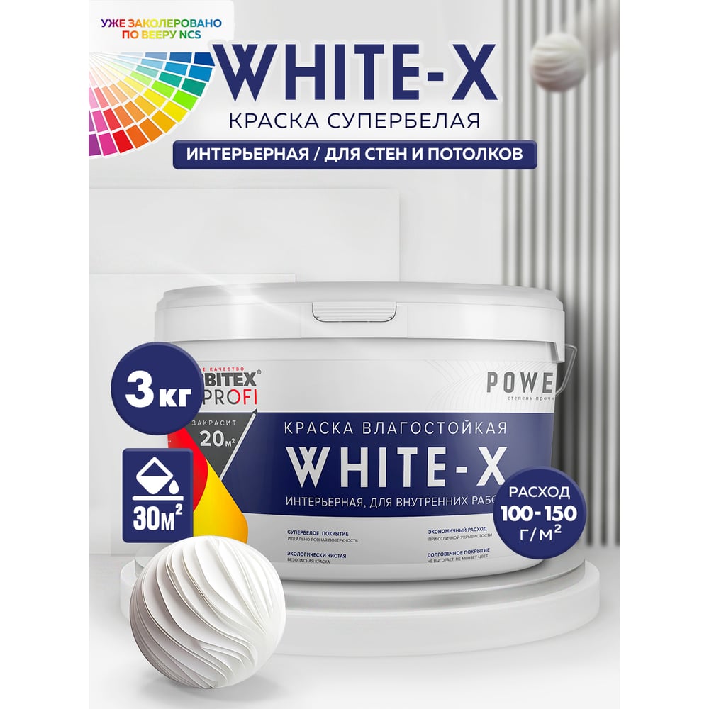 Краска Farbitexакриловая влагостойкая интерьерная супербелая White-X база А 4300008750