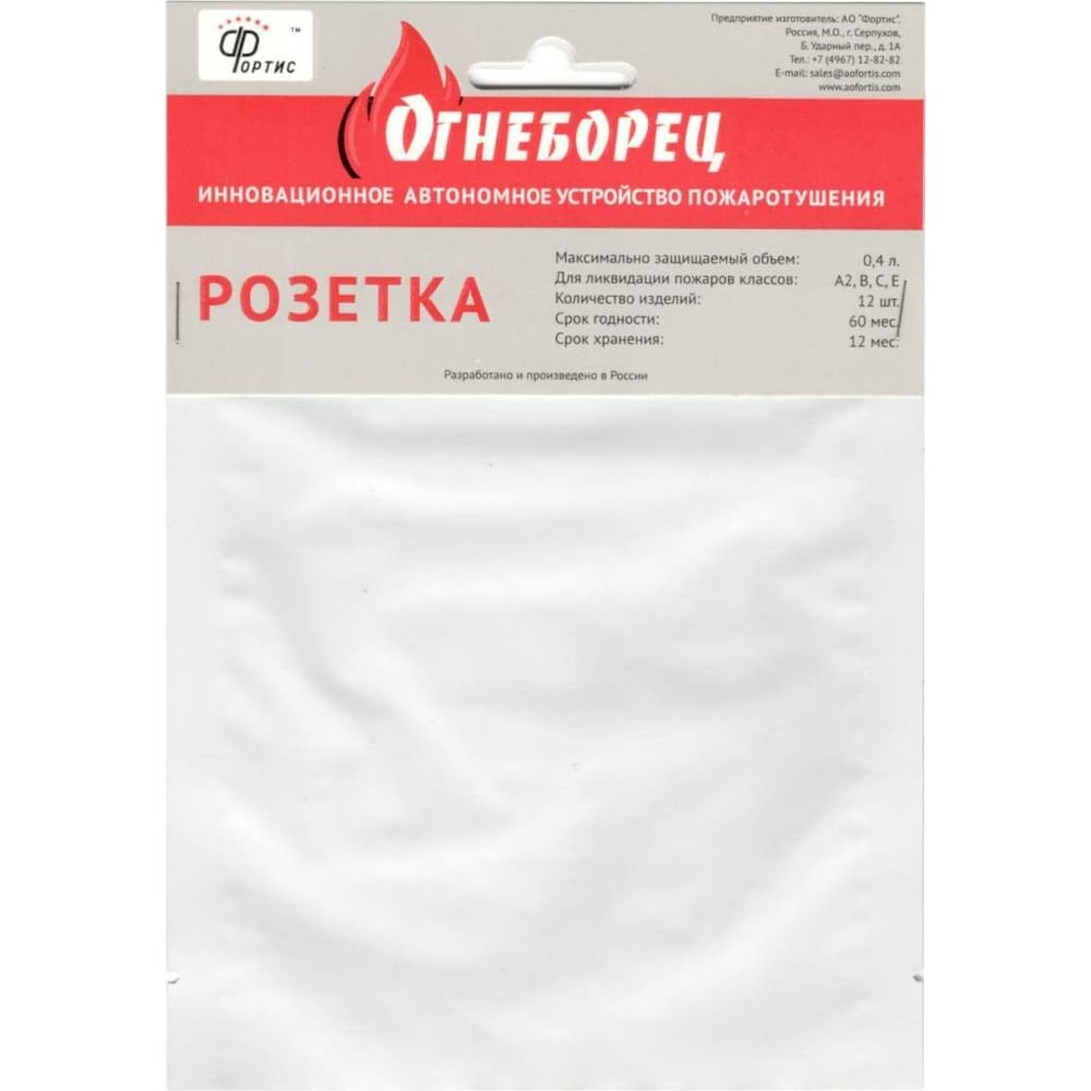 Автономное устройство пожаротушения АО Фортис "Огнеборец" розетка, 12 шт. 4603781975190
