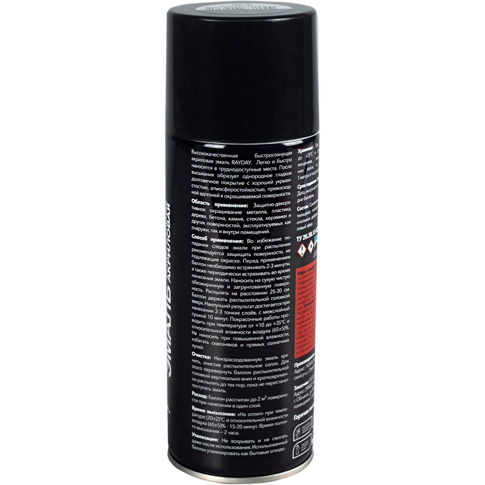 Акриловая аэрозольная краска RAYDAY Ral 9005 черная, глянцевая, 520 мл Rd-077 223223