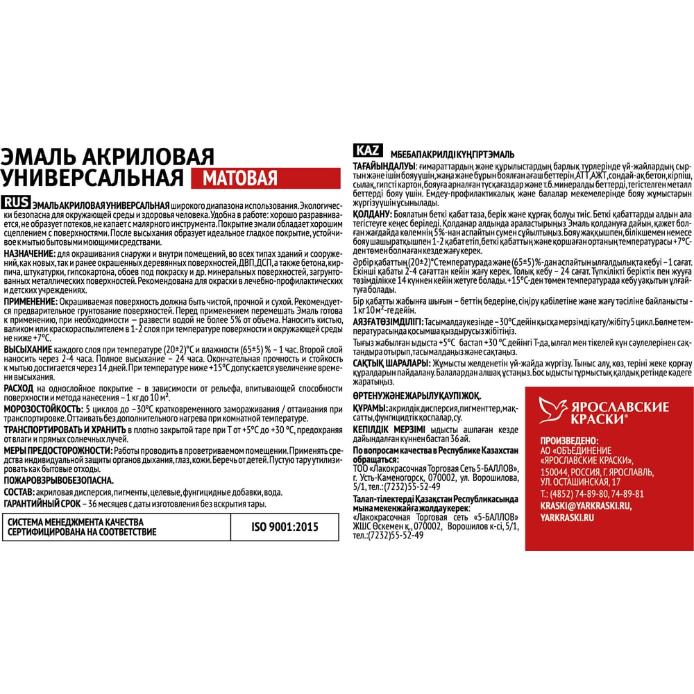 | Тип | акриловая (водно-дисперсионная) |