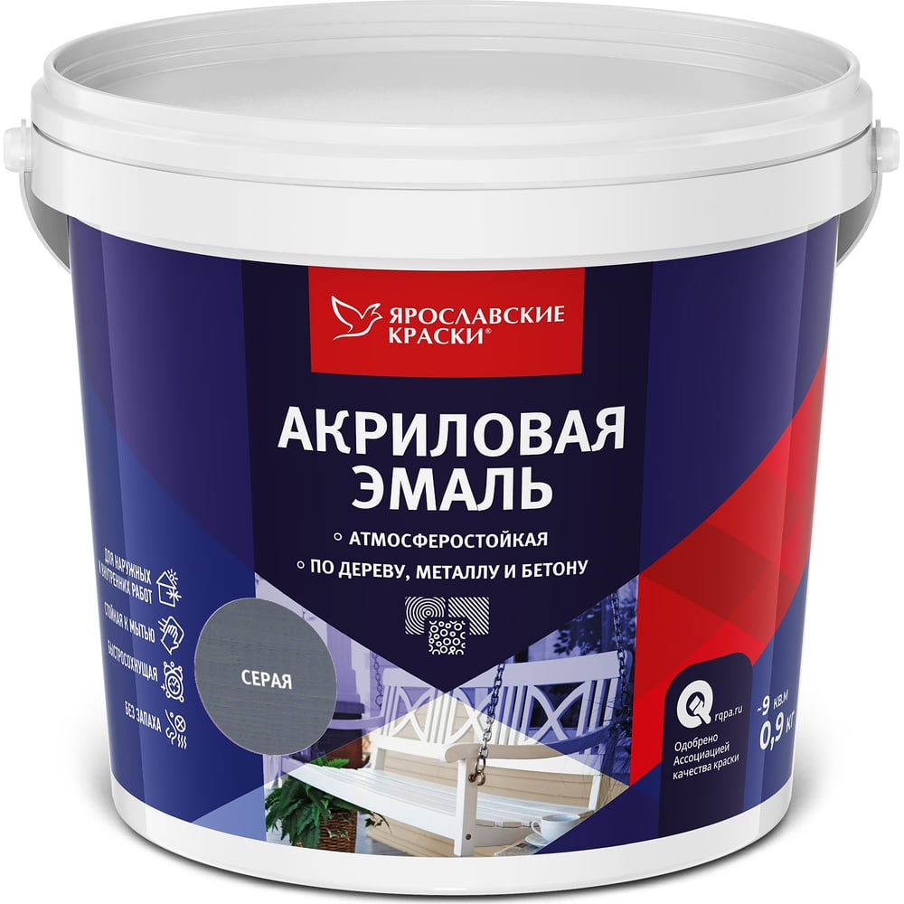 Универсальная акриловая эмаль ЯРОСЛАВСКИЕ КРАСКИ серая матовая, 0,9 кг О05192