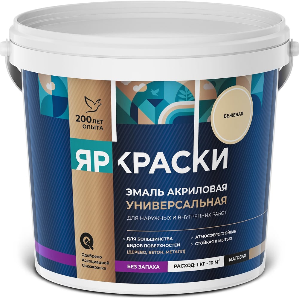 Универсальная акриловая эмаль ЯРОСЛАВСКИЕ КРАСКИ бежевая матовая, 0,9 кг О05194