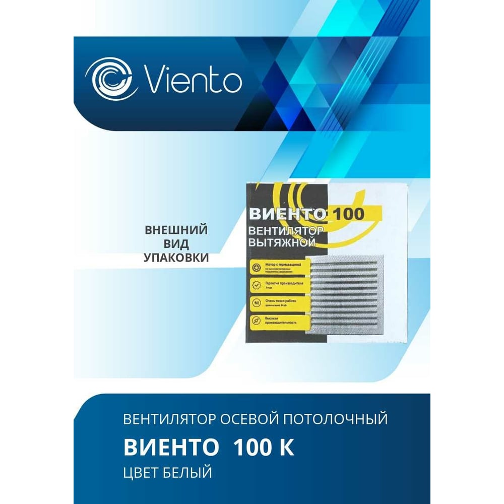 Осевой вытяжной вентилятор ВИЕНТО 100К 100К