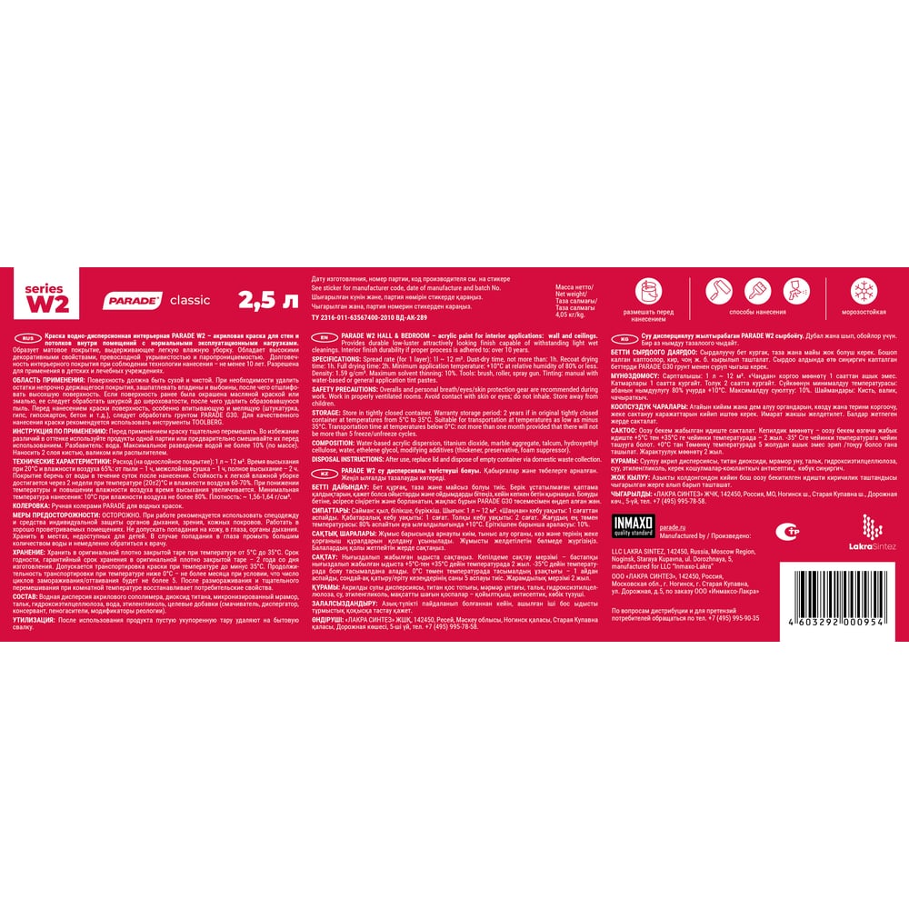 Акриловая краска PARADE W2 Гостиная & Спальня 90002002313