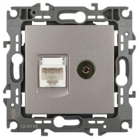 Розетка компьютерная + телевизионная Elegance 14-3110-16 RJ45+TV титан Эра Б0065768