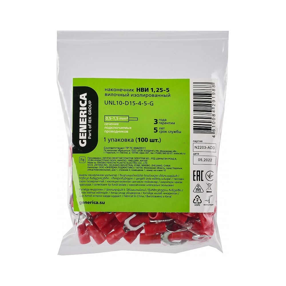 Наконечник GENERICA нви 1,25-5 вилка 0,5-1,5мм (100шт/упак) UNL10-D15-4-5-G