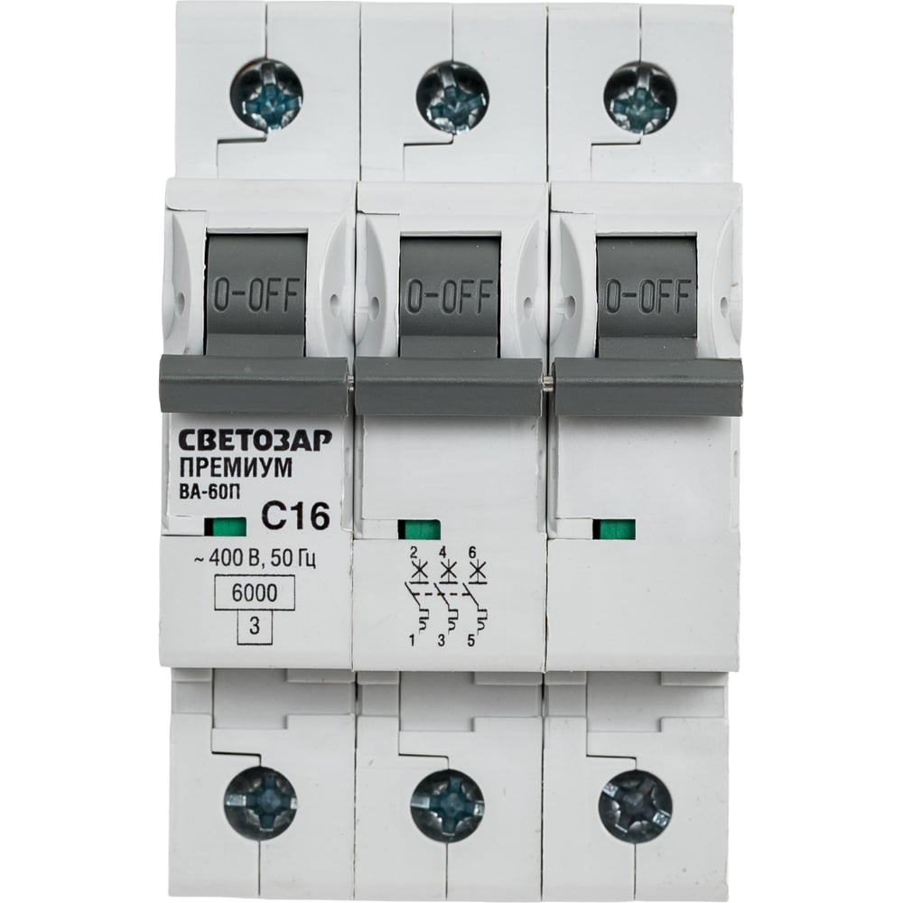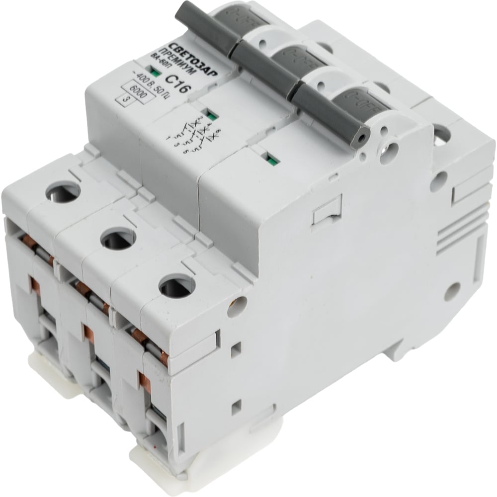 Автоматический выключатель СВЕТОЗАР ПРЕМИУМ 3-полюсный, 16 A, C, откл. сп. 6 кА, 400 В SV-49023-16-C