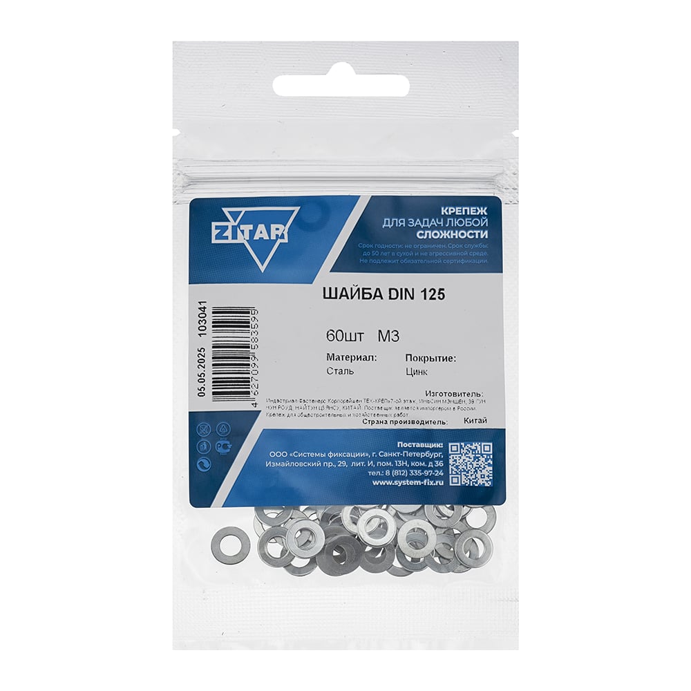 Шайба DIN125а плоская оцинкованный М3 60 шт - Zitar 103041