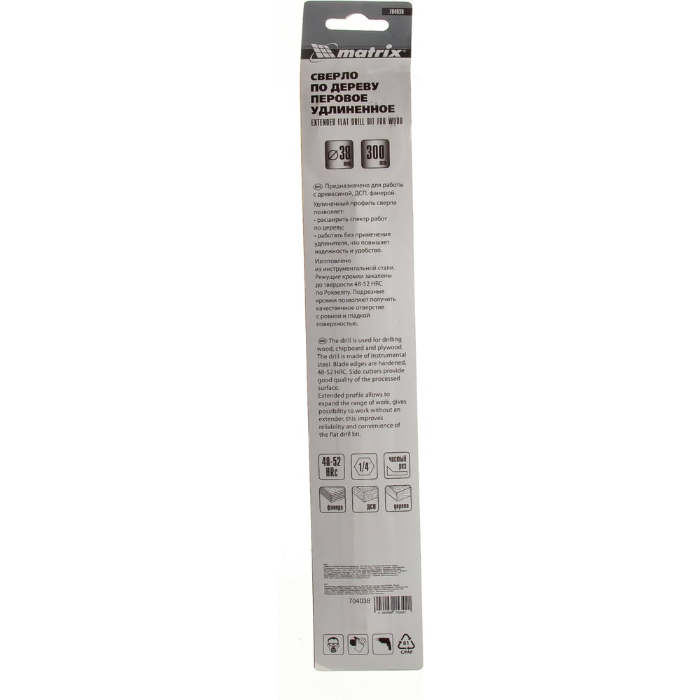 Сверло по дереву перовое удлиненное (38х300 мм; HEX1/4) MATRIX 704038