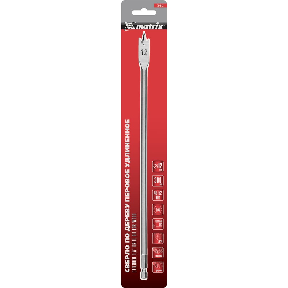 Сверло по дереву перовое удлиненное (12х300 мм; HEX1/4) MATRIX 704012
