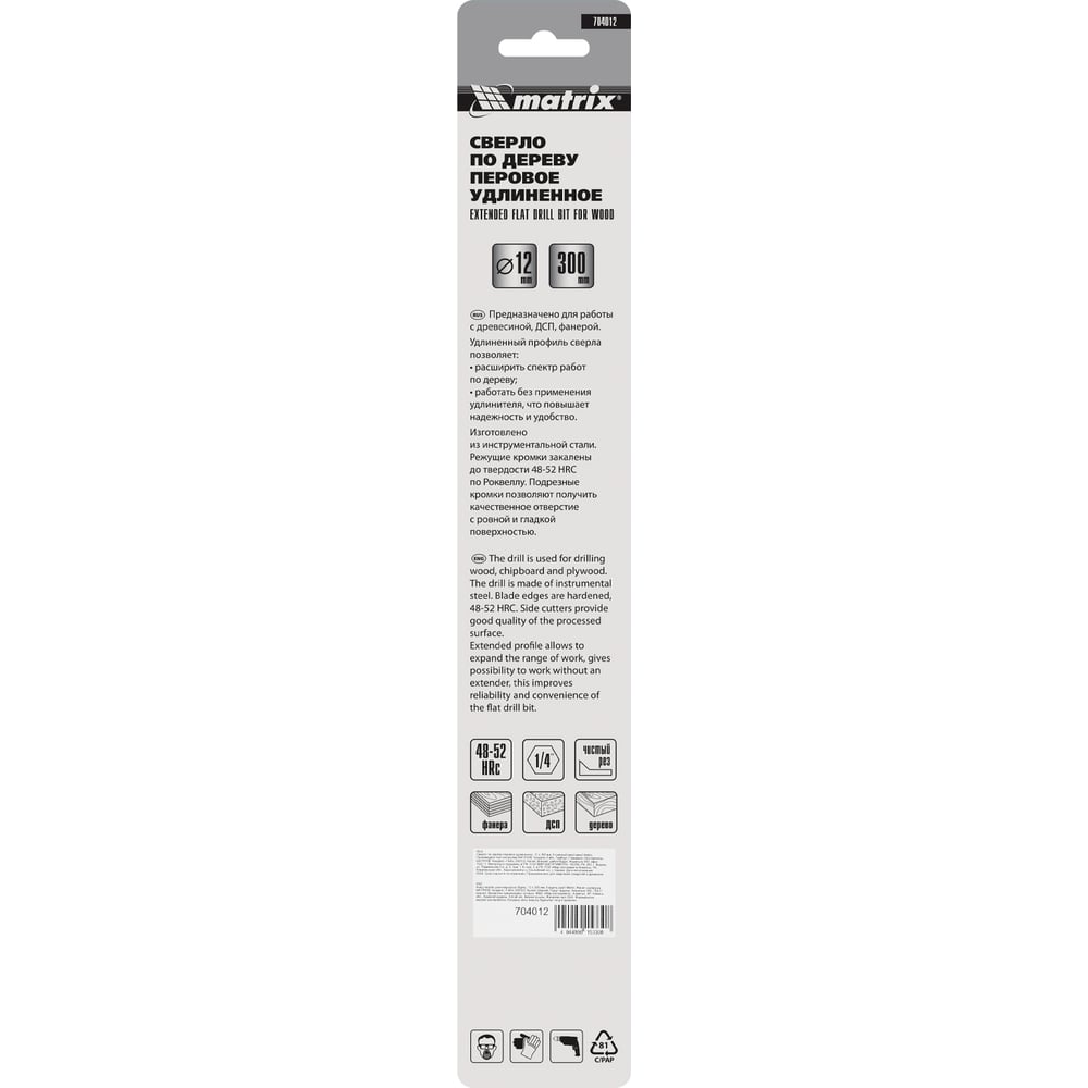 Удлиненное перовое сверло по дереву MATRIX 704012