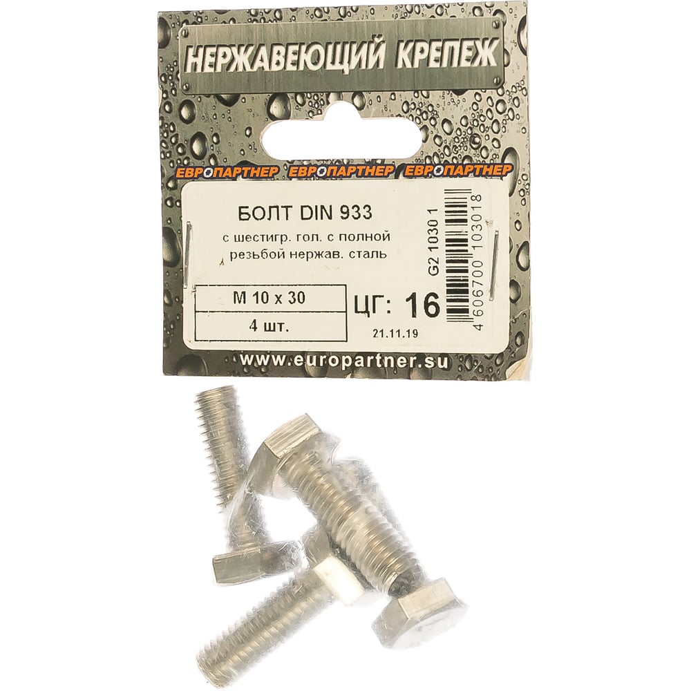 Болт ЕВРОПАРТНЕР 10х30 DIN933 (4 шт.) 1030 1