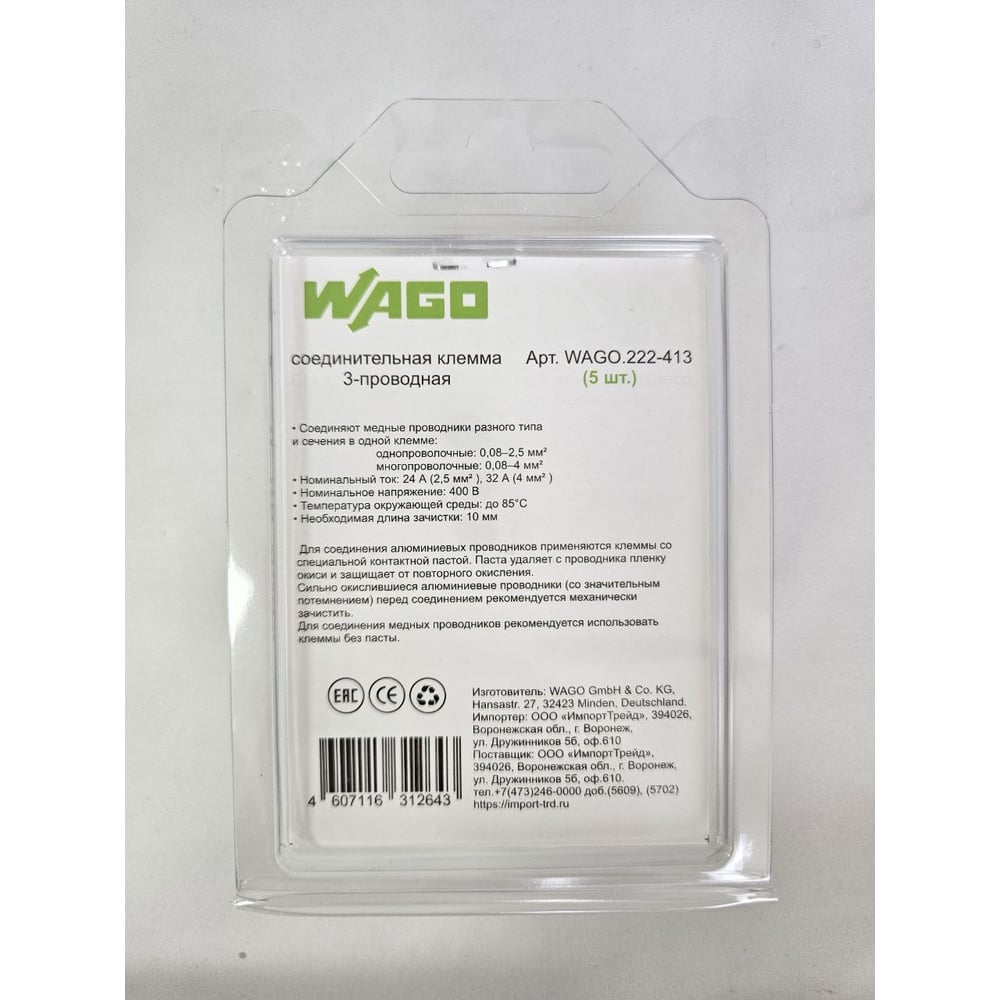 | Количество зажимаемых проводов | 3 шт |