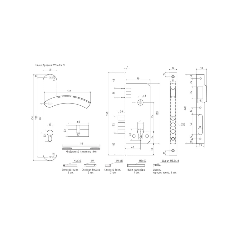 Высота 240 мм Длина 70 мм Комплектация корпус, механизм, ручки, ключи, ответная планка, крепеж Ширина 22 мм Класс товара Бытовой Коллекция нет Назначение для деревянных/металлических дверей Влагозащищенный нет С защелкой да Кодовый нет Ручки в комплекте да С вертушкой нет Уличный нет Антивандальный нет Сейфовый нет Двухсистемный нет Морозоустойчивость нет Противопожарный нет Удаление ключевого отверстия (Backset) 45 мм Вылет ригеля 20 мм Тип ключа английский Количество ригелей 3 шт Форма ригеля цилиндр Количество ключей 5 шт Тип замка врезной Межосевое расстояние 85 мм Тип запирания не автоматическое Направление открывания двери левое/правое Класс секретности малый Класс безопасности 1 Цвет лицевой планки хром матовый