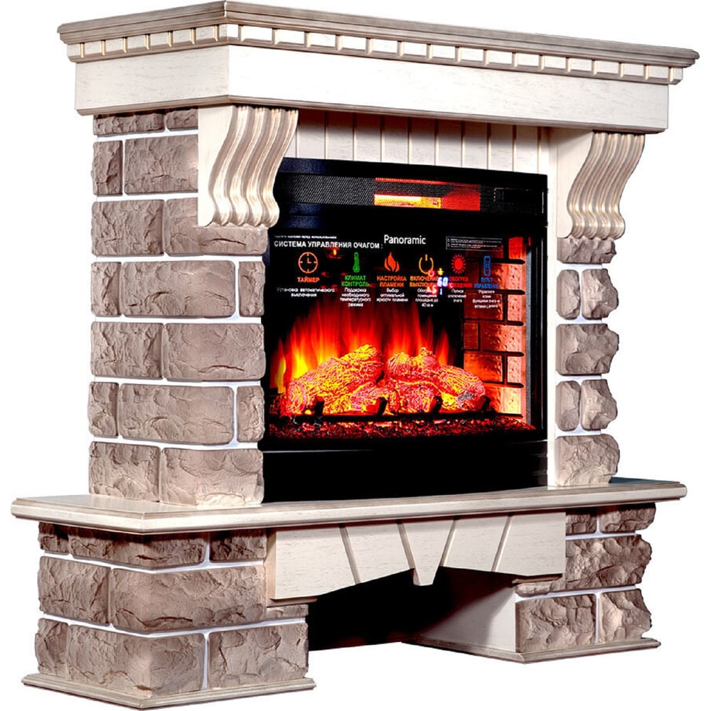 Каминокомплект InterFlame Экстер Кавказ Панорамик25 бежевый с золотой патиной с Кавказ25 бежевый ЗП