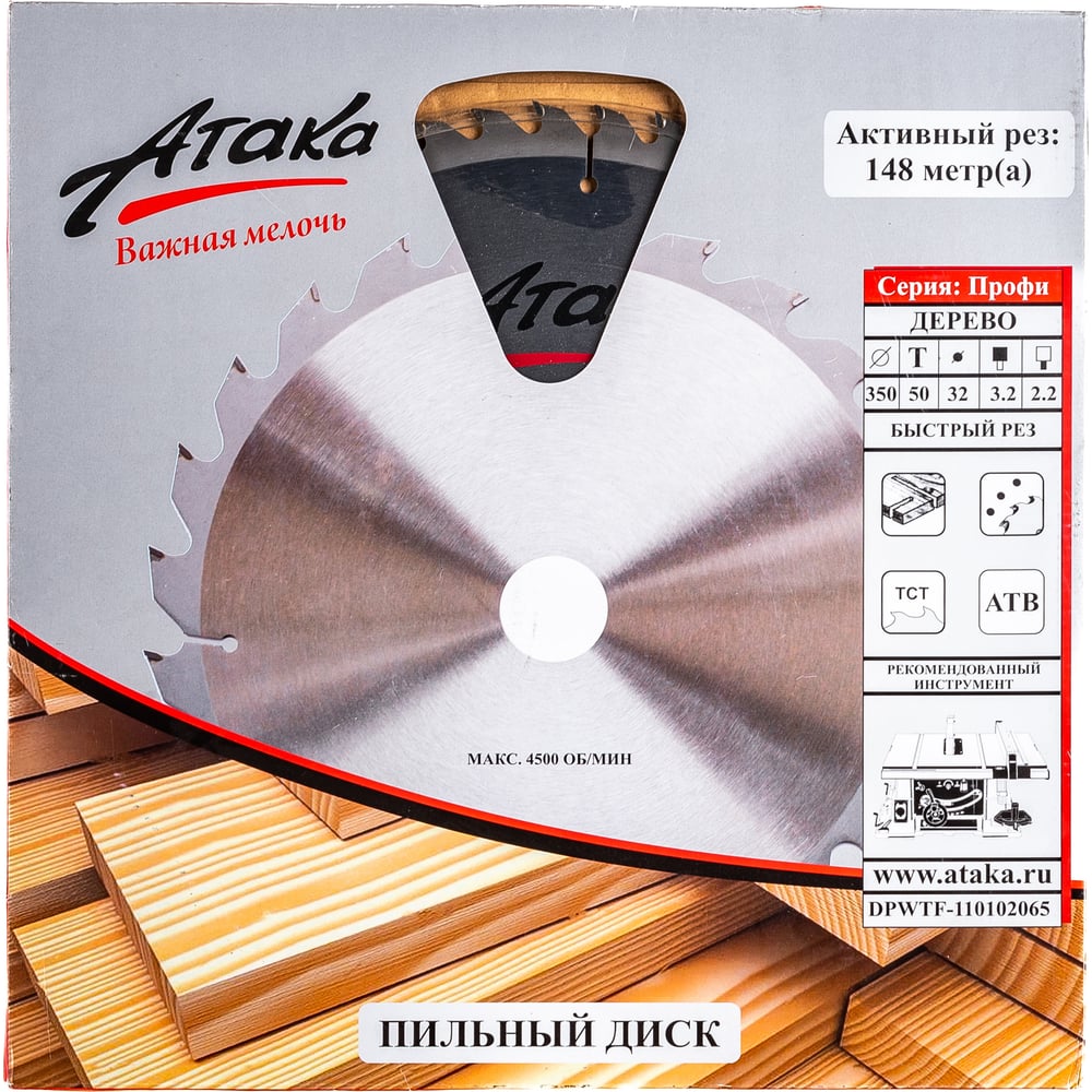 Диск пильный (350 мм; 50T; 32 мм) по дереву профи АТАКА 8079010
