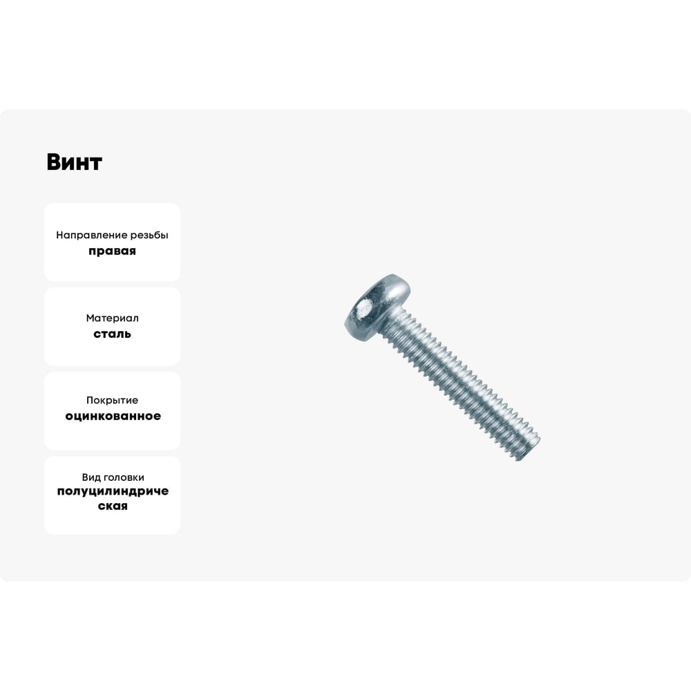 Винт КРЕП-КОМП полуцилиндрическая головка, цинк DIN7985 6х50 20шт вц650мф