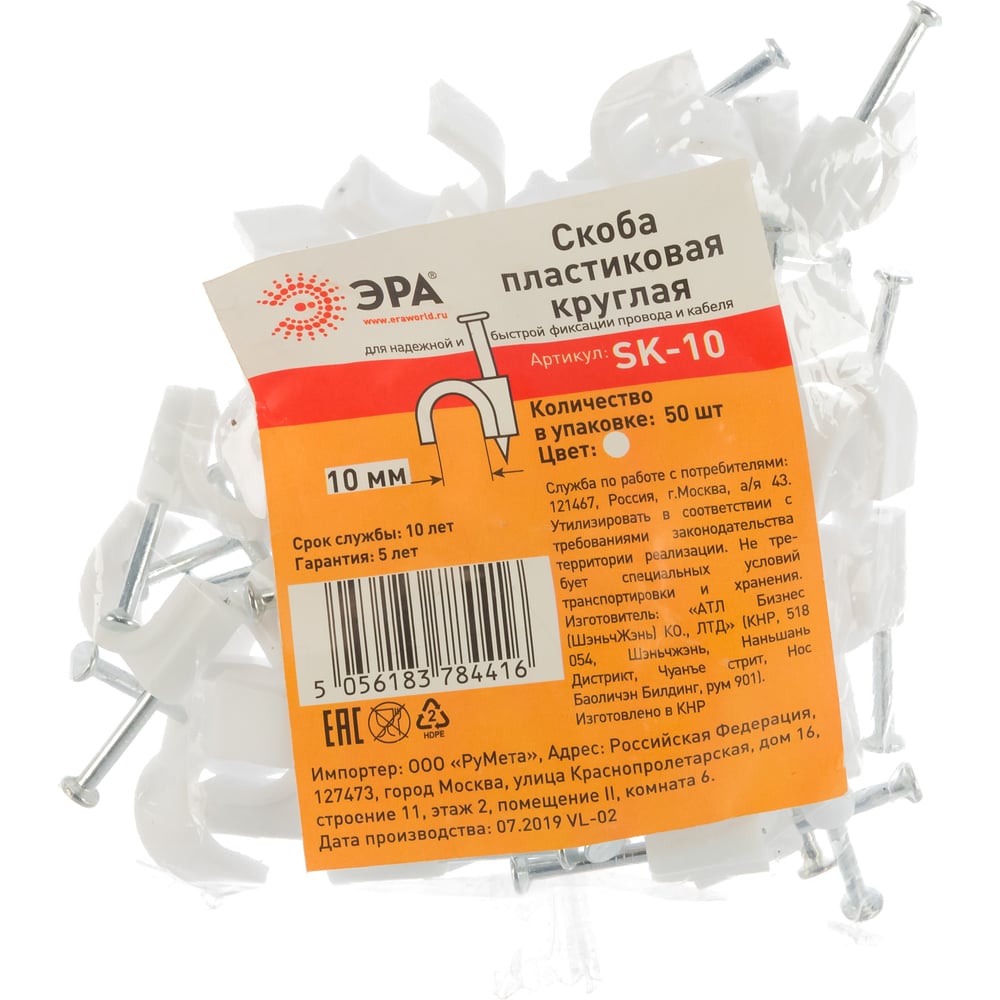 Круглая скоба ЭРА 10 мм пластиковая Б0038895