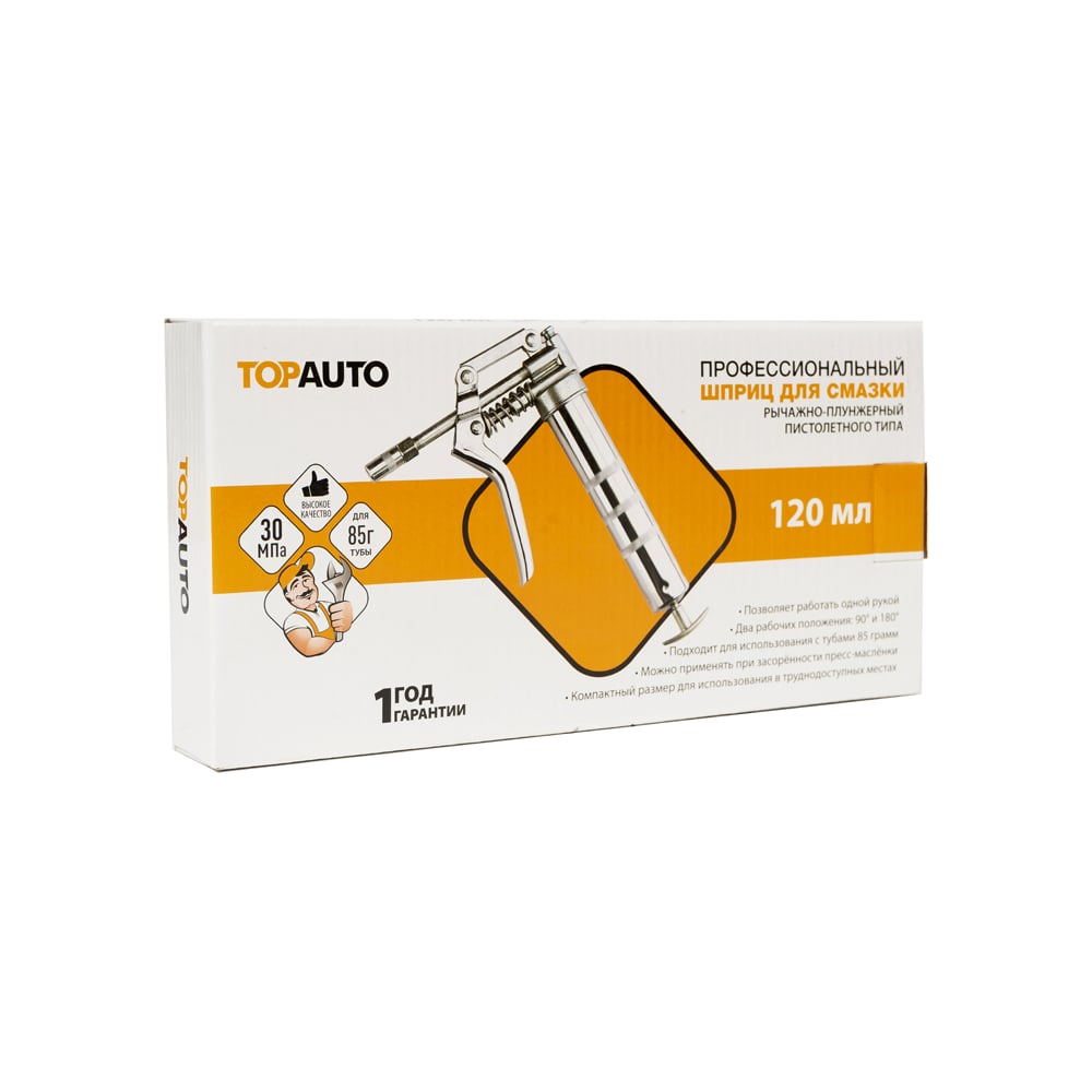 Шприц ПИСТОЛЕТНОГО ТИПА для одной руки TopAuto ,рычажно-плунжерный 120 мл,трубка 145 мм TA - P120