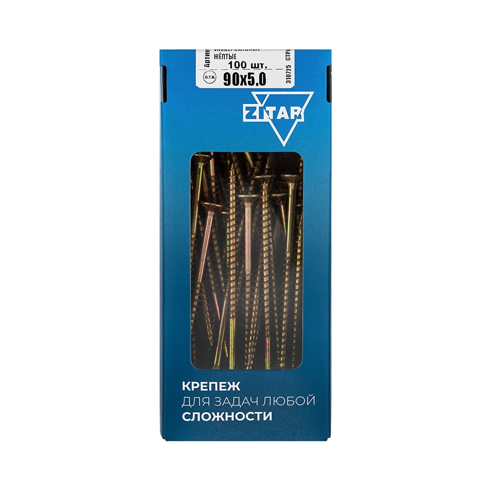 Универсальные саморезы 90x5,0 мм 100 шт желтые коробка с окном Zitar 102267