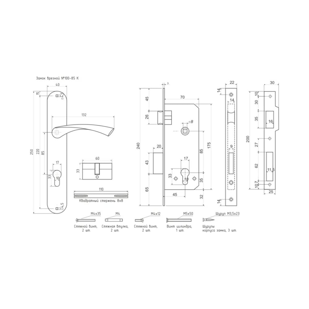 | Комплектация | корпус, механизм, ручки, ключи, ответная планка, крепеж |