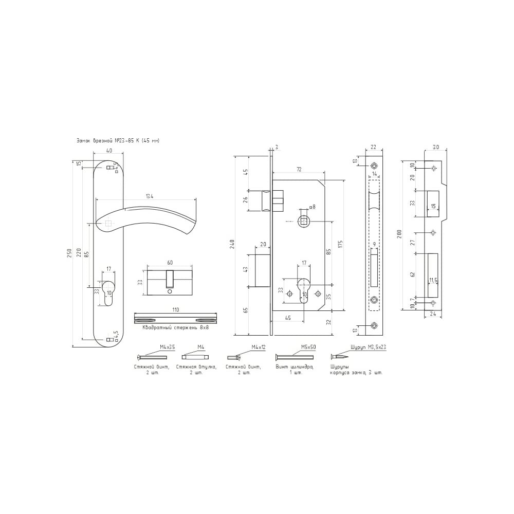 | Комплектация | корпус, механизм, ручки, ключи, ответная планка, крепеж |