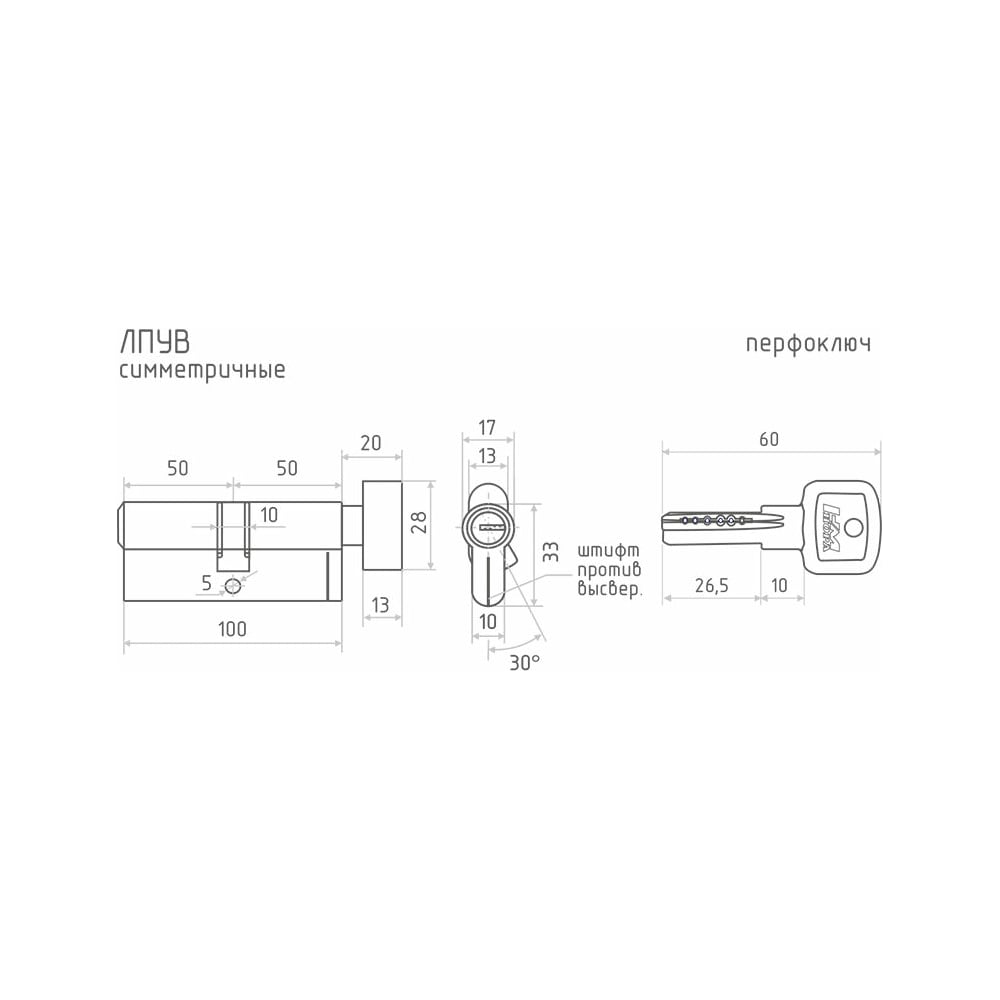 Цилиндровый механизм НОРА-М ЛПУВ-100 50-50 латунь Х 7187