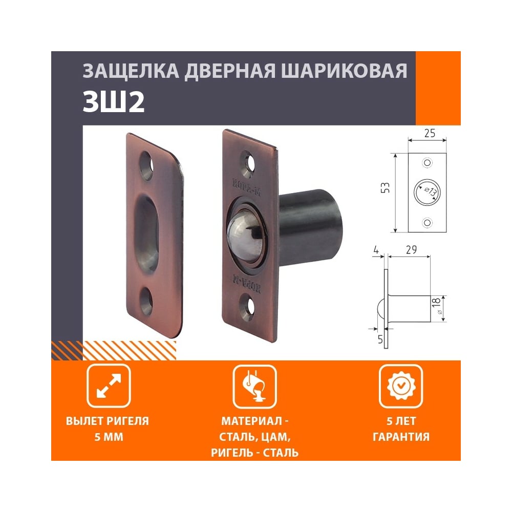Шариковая защелка НОРА-М ЗШ2 старая медь 16039