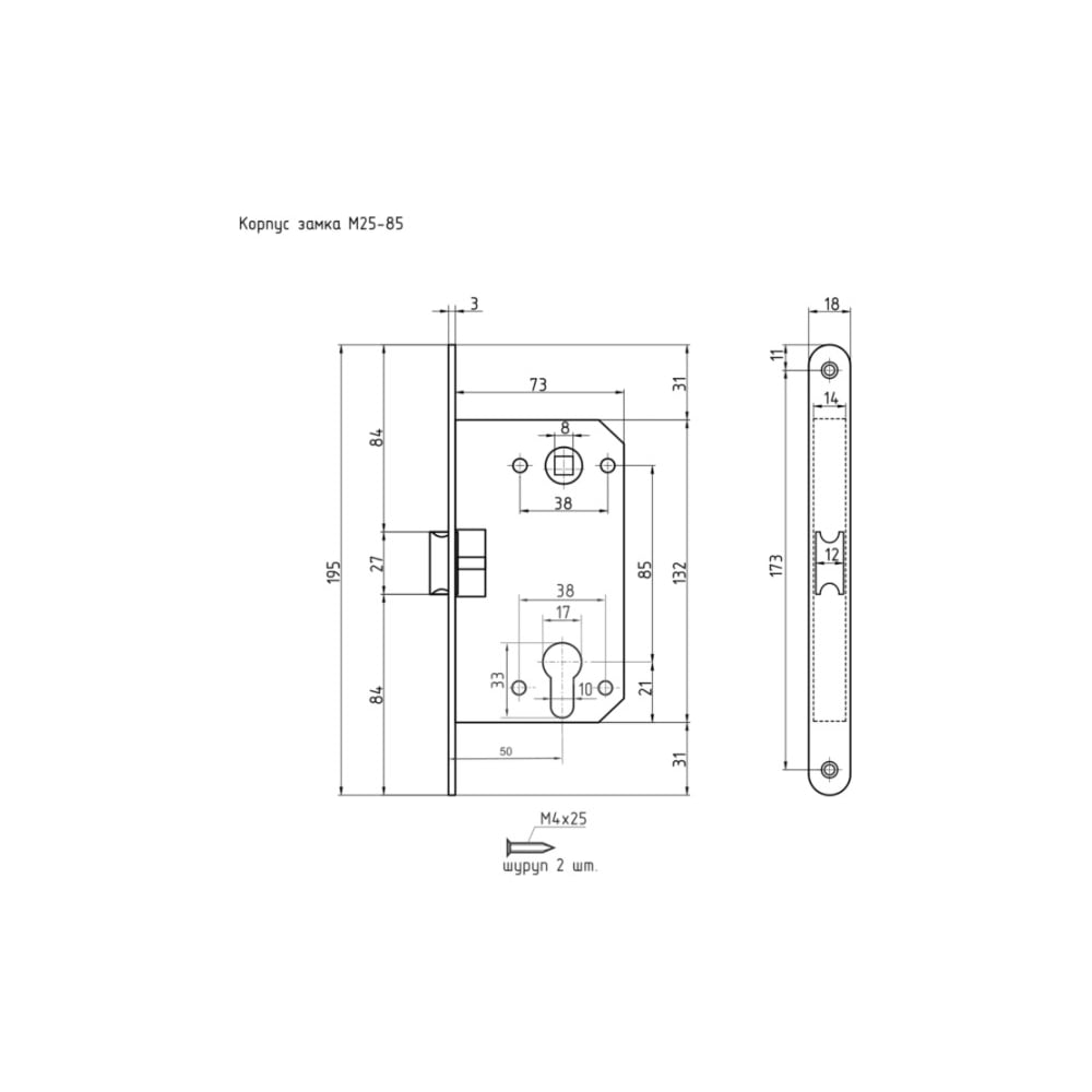 Корпус замка НОРА-М М25-85 мм ст.медь, под цилиндр 9625