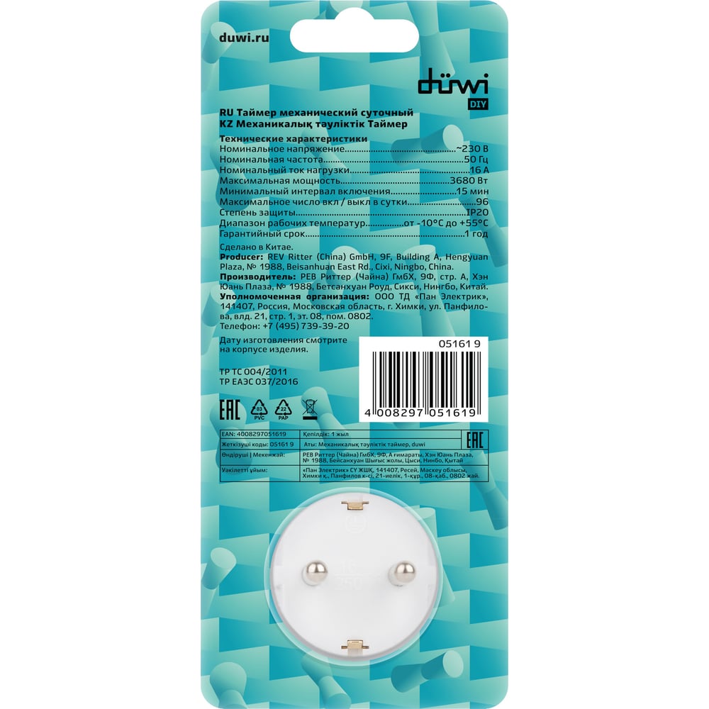 Механический суточный таймер Premium duwi 05161 9 белый