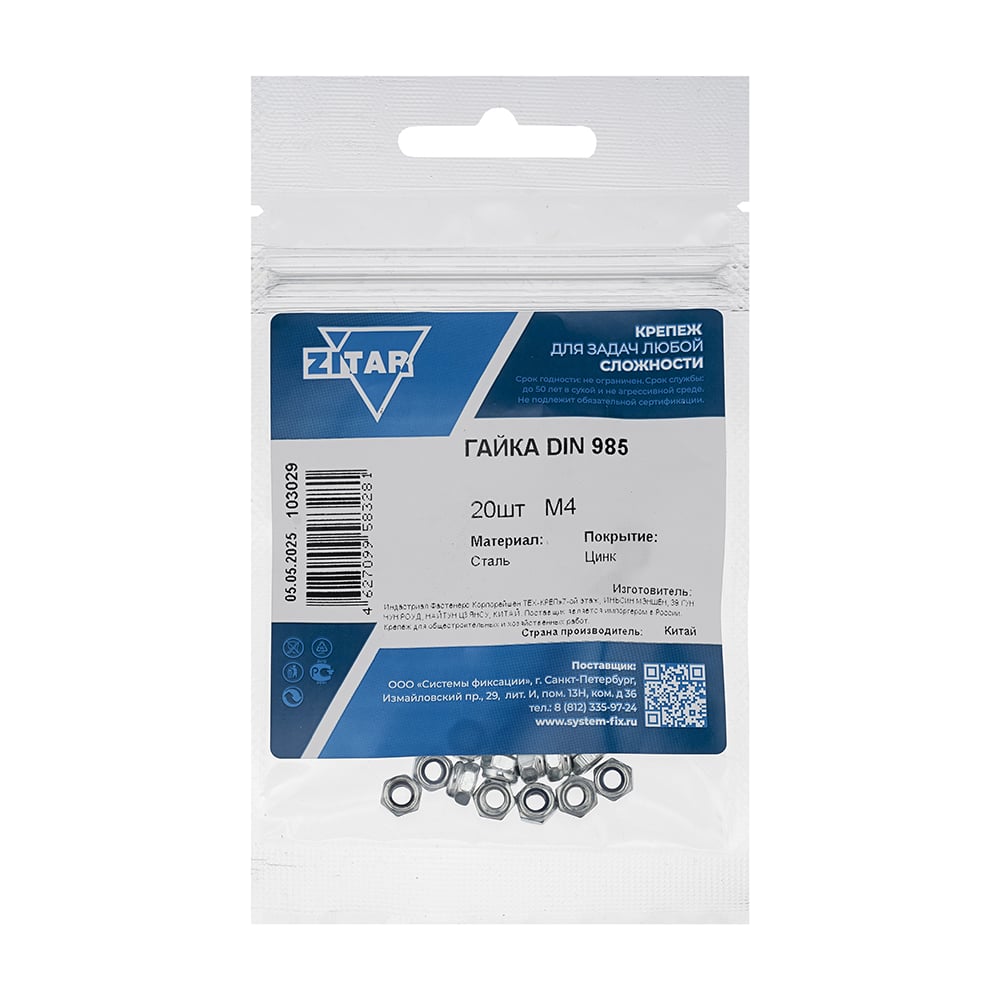 Гайка DIN985 самоконтрящаяся оцинкованный М4 20 шт Zitar 103029