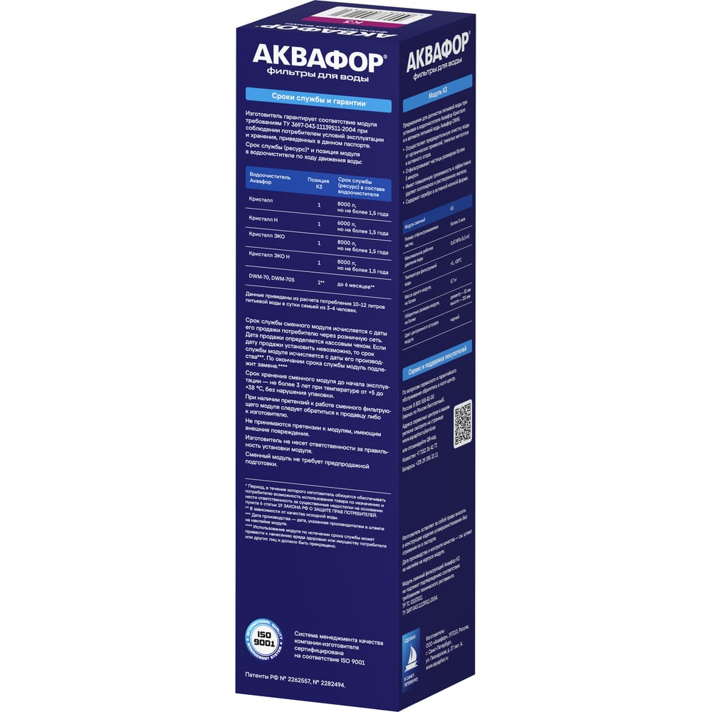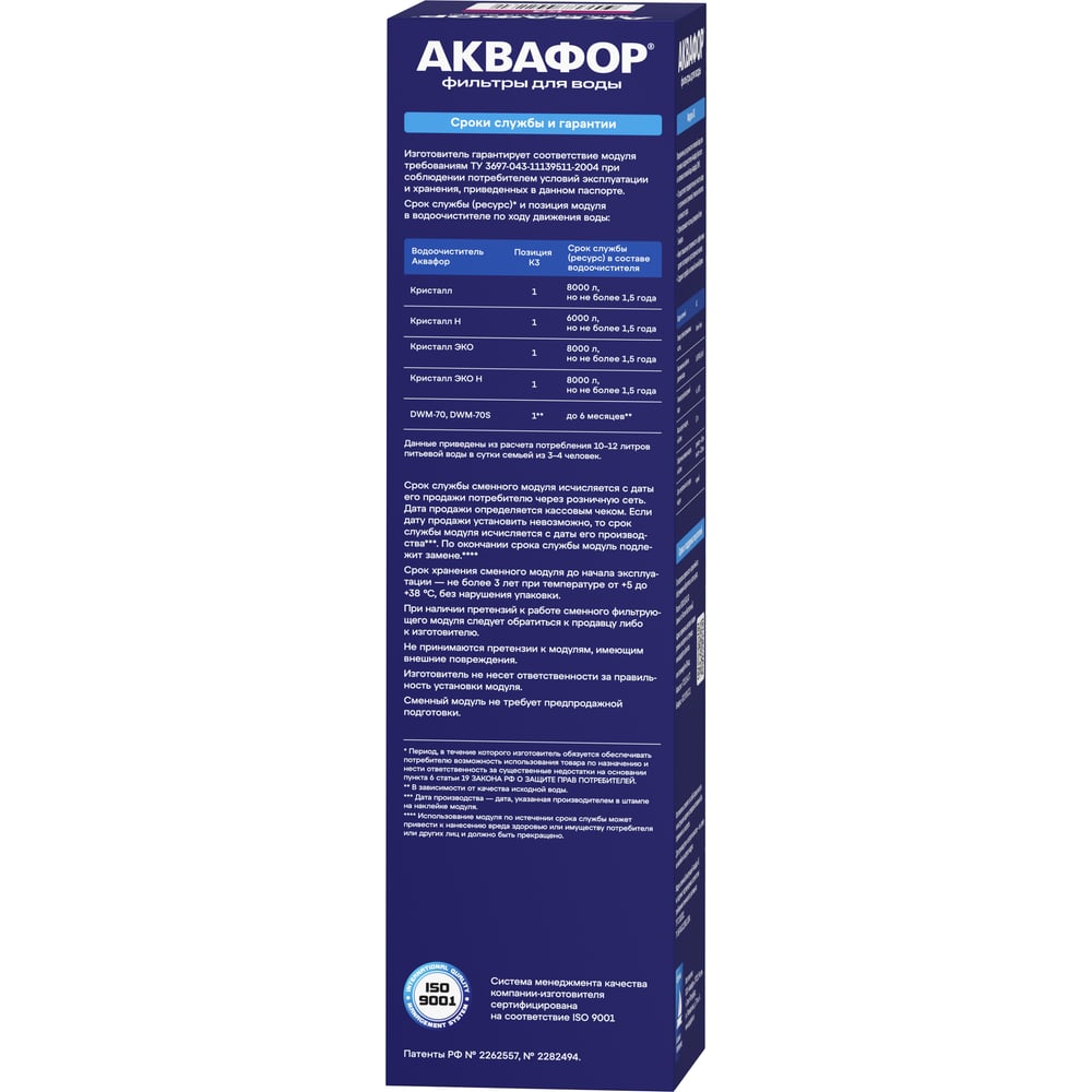 | Тип сменного модуля | Аквафор Кристалл |