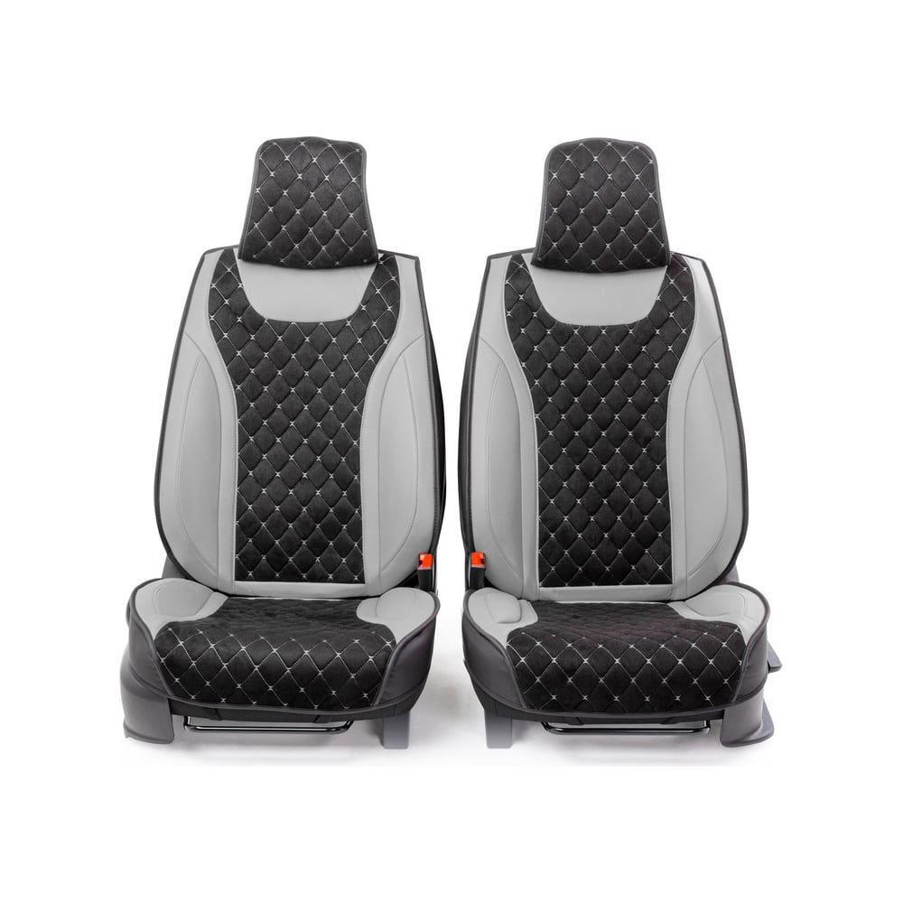 Каркасные 3D накидки на передние сиденья CarPerformance 2 шт., экокожа и алькантара CUS-3044 BK/GY