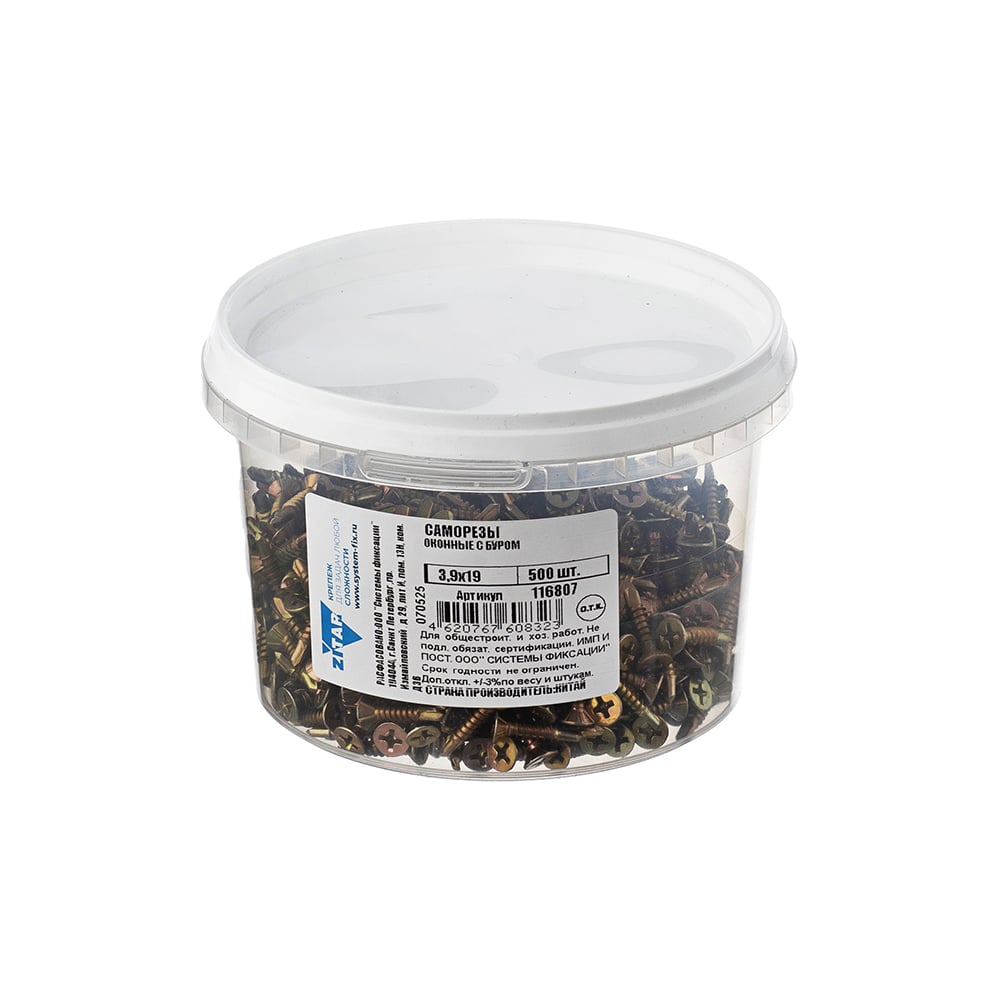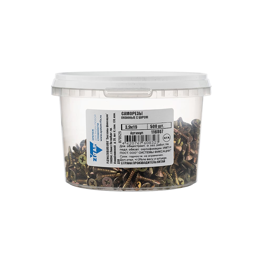 Саморезы оконные с буром 3,9x19 мм, желтые, 500 шт в ведре мал Zitar 116807