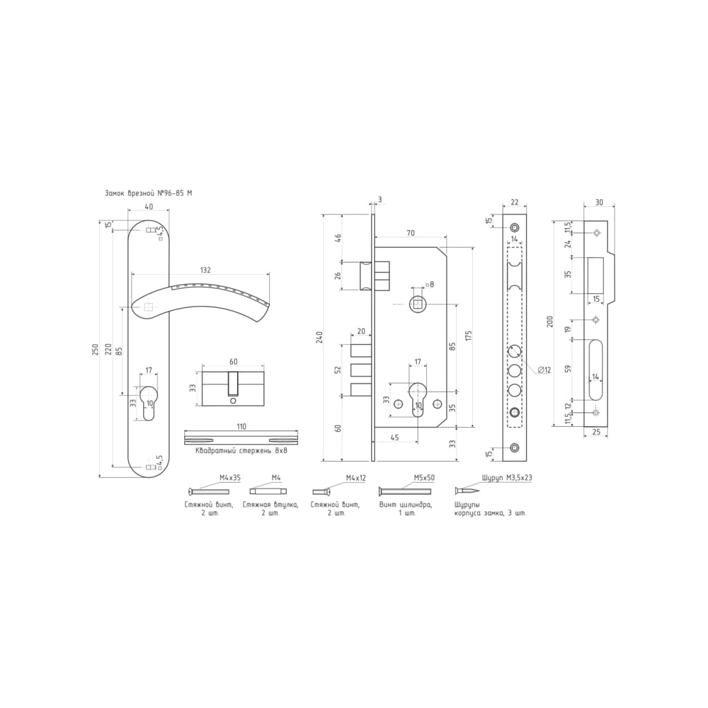 | Комплектация | корпус, механизм, ручки, ключи, ответная планка, крепеж |